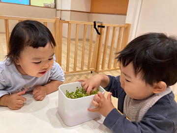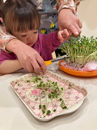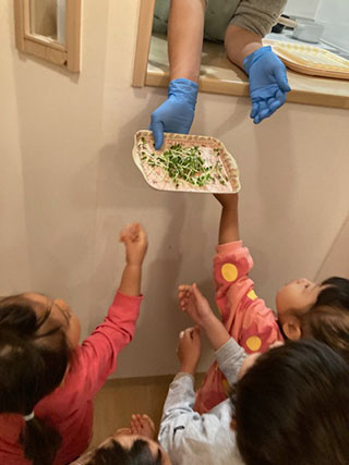 緑のお野菜も苦手になっていた子どもたちでしたが、自分たちで育てたかいわれ大根はモリモリ食べることができました(^o^)