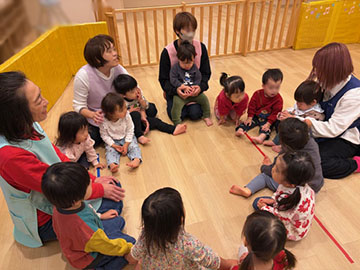 きよしこのよるの歌に合わせてキラキラボールをお隣のお友だちに回していくゲームをしたりダンスをたのしみました!